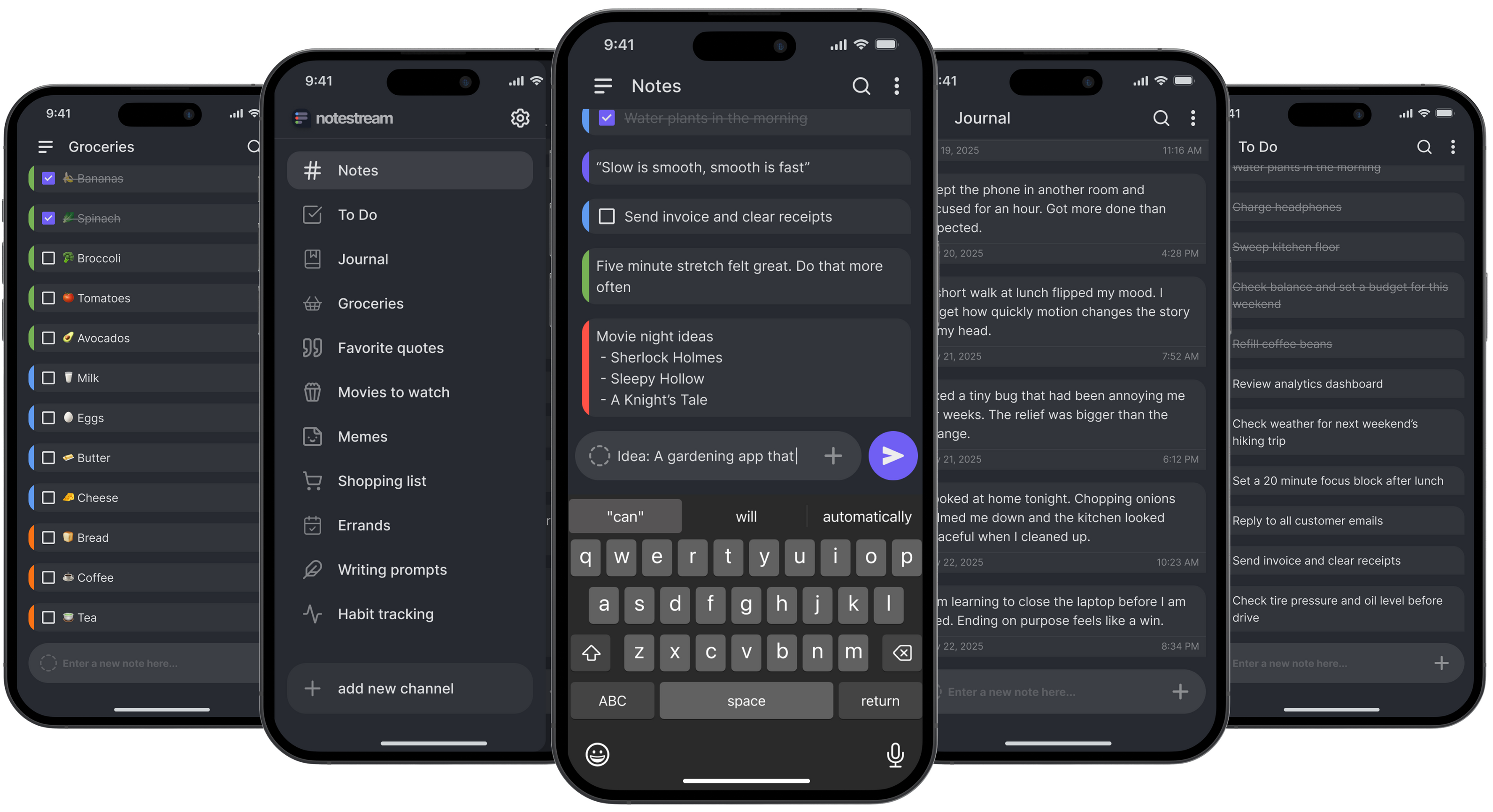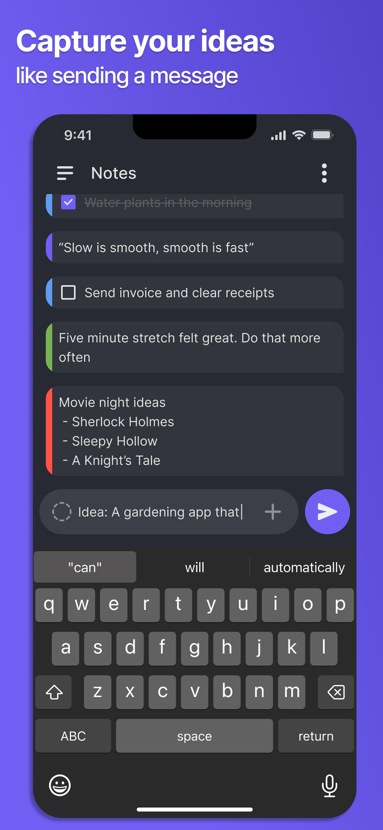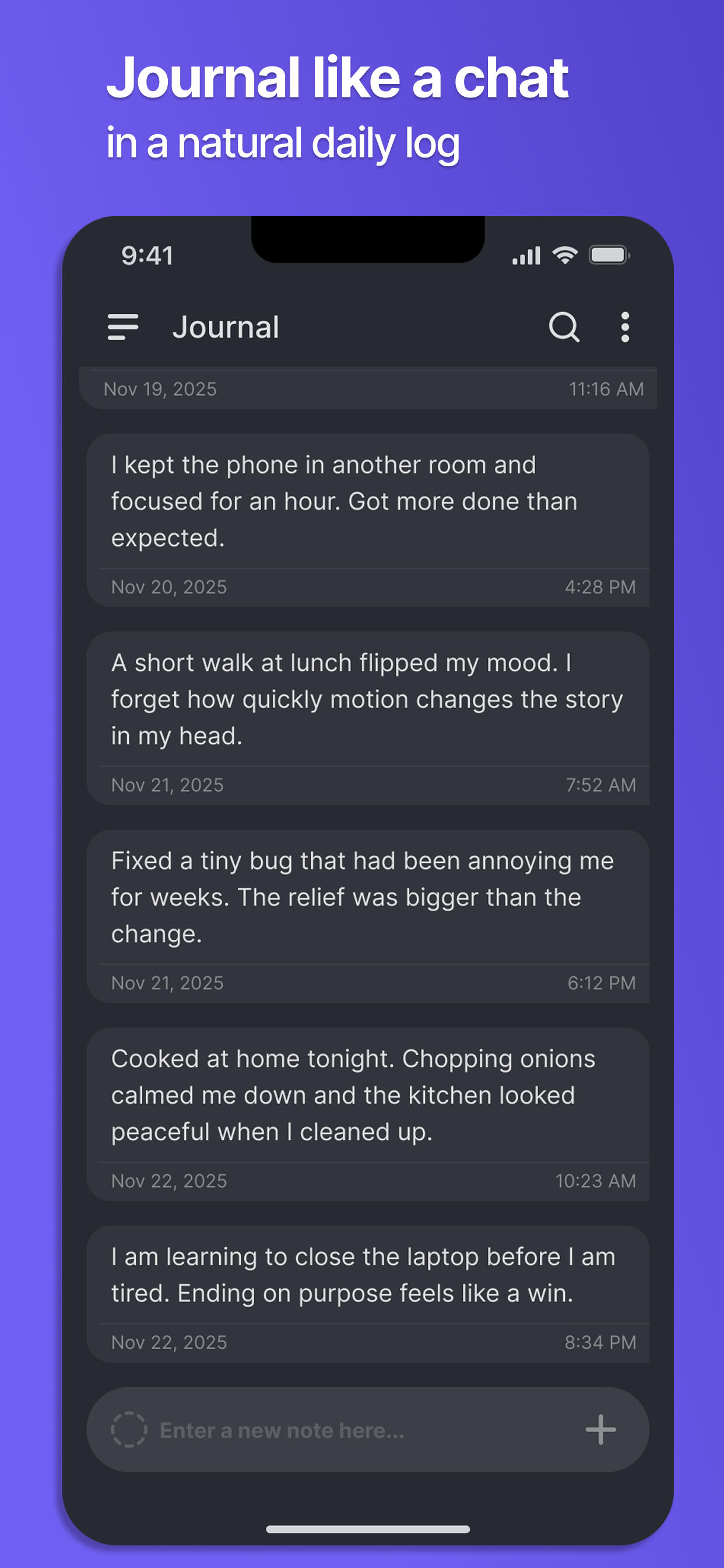 Quick-capture notes in a chat-style format. For daily notes, memos, to-dos, lists, and journals.